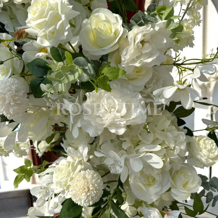 Two white flower pillars. Self-pickup is available since they break down to fit in a standard car and can be reassembled in under 10 minutes without tools.